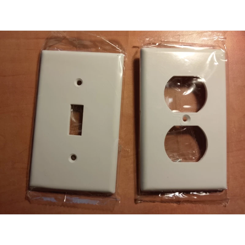 Mfg/brand: Model/part: Amazon search: Condition: NewWhite cover plate for switch $0.25 ea [5 available] White cover plate for receptacle plate $0.25 ea [7 available]
