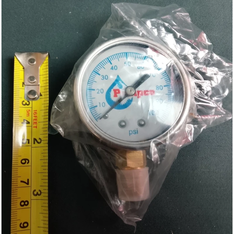 Mfg/brand: PompcoCondition: New old stock1/4 NPT Lower Mount, 0-100psi Glycerin Filled,2 Inch Dial Size and 304 Stainless Steel Case Quantity available: 2Price: $10 each