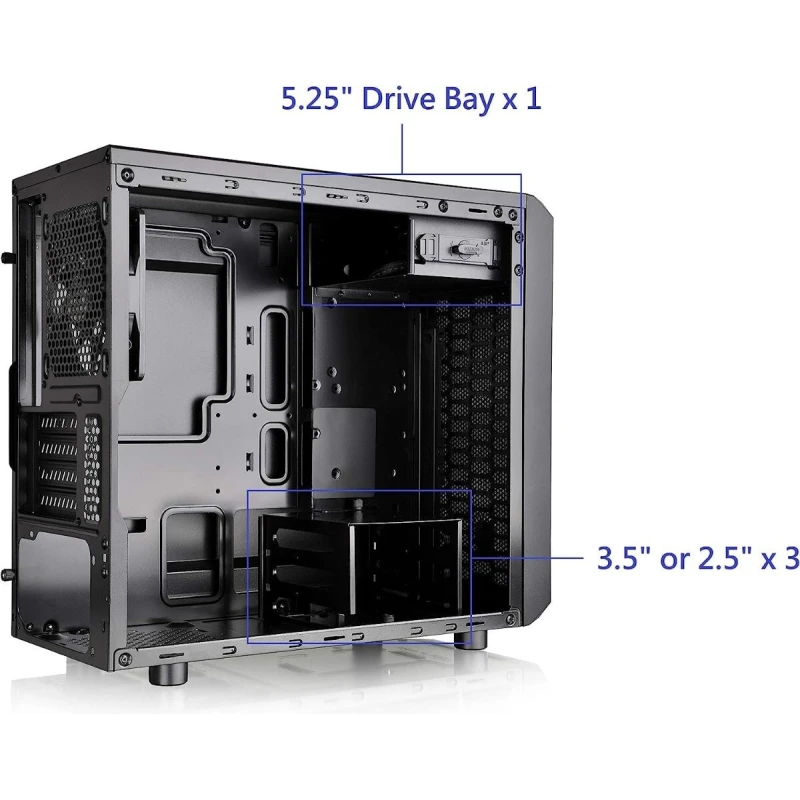 1x 5.25" Drive bay with 3x 3.5" / 2.5" HDD/SSD Mounting Options