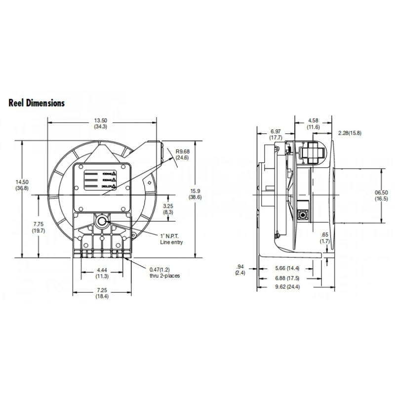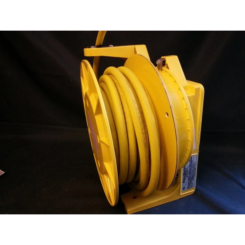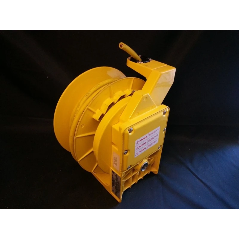 Woodhead / Molex Industrial Cord Reel part no.: 92434 SOW cable 600V rated. 22 Amp (using 30-40ft 10/3 SOW cable) Cast Aluminium enclosure with Yellow powder coated finish NEMA 4 rating Cable guide is adjustable every 5 deg over a 270 deg arc Design prohibits annoying lock out when cable is fully extended Containerized main spring allow for safe, simple handling and replacement Reels are constructed with spring tension to lift or stretch cable with no more than 10% sag 4 lb retraction weight Lifting speed: 150 f.p.m. max. 1 inch NPT primary cord entry Collector ring rating: 30A. [url=http://www.woodheadsales.com/pdfs/reels.pdf]http://www.woodheadsales.com/pdfs/reels.pdf[/url] [url=http://www.literature.molex.com/SQLImages/kelmscott/Molex/PDF_Images/987650-8062.pdf]http://www.literature.molex.com/SQLImages/kelmscott/Molex/PDF_Images/987650-8062.pdf[/url] Condition: Previously owned, excellent condition. Brand new cable