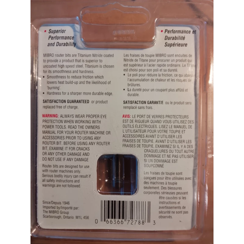 Mfg/brand: MibroModel/part: 727881 UPC: 066366727883Condition: New1/4" shankTitanium Nitride CoatingQuantity available: 3Price: $10 each